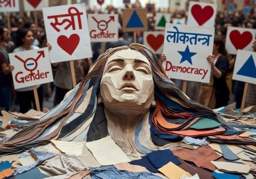 जेण्डर के साँचे में स्त्री दुनिया को बाँध कर स्त्री व्यक्तित्व को अनुकूलित किया जाना सुनियोजित पितृसत्तात्मक रणनीति थी, जिसने स्त्री की सम्भावनाओं, अधिकारों और सार्वजनिक उपस्थिति पर ताले जड़ दिए। जेण्डर की यह अवधारणा सोच और व्यवहार में इतनी गहराई तक पैठ गयी कि वह अनायास ही हमारे कर्म और विचार दोनों को संचालित करने लगी—और पुरुष भी इससे अछूते नहीं रहे। दिनकर की प्रसिद्ध पंक्ति,“इतिहास पहुँचता जभी निकट नारी के/हो रहता अचल या कि कविता बन जाता है” (उर्वशी) में निहित सदाशयता के पासंग में यह विचार नहीं आया कि कविता बन जाना स्त्री के लिए कितना बड़ा दण्ड बना। कविता बनकर वह इतिहास से ही निष्कासित कर दी गयी—दृश्यता से वंचित, सत्ता से बाहर और सामाजिक निर्णय-प्रक्रिया से अनुपस्थित। लोकतन्त्र के सन्दर्भ में इसका अर्थ यही रहा कि स्त्री को शासन-तन्त्र से बाहर कर दिया गया और उसकी किसी भूमिका या भागीदारी को मान्यता नहीं दी गयी। आजादी के बाद स्त्री को मताधिकार देकर कर्तव्य पूरा होना मान लिया गया, पर समानता की जमीन उपलब्ध कराए बिना इस अधिकार के क्या मायने रह जाते हैं, इसपर विचार किया जाना था। इसके बिना लोकतन्त्र में स्त्री की उपस्थिति नगण्य बनी रही और परिणाम यह हुआ कि उसके सवाल भी व्यवस्था में माकूल जगह नहीं बना सके। शासन व्यवस्था के तमाम दावों के बावजूद पितृसत्ता की दृष्टि में यह नहीं रहा कि आधी आबादी को शासन तन्त्र वंचित करके भला वह लोकतन्त्र की किस सफलता का बखान कर सकता है!